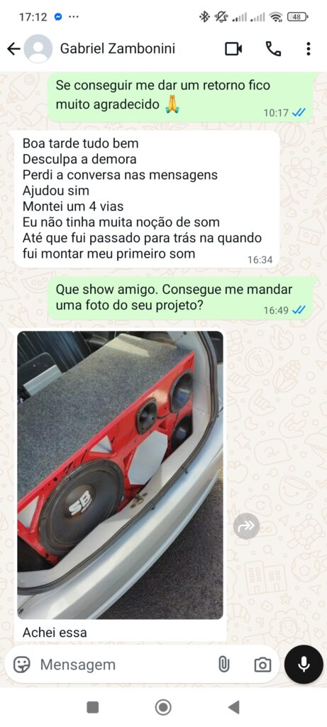 De lá pra cá, foram centenas de projetos, acertos, testes e muito aprendizado. Hoje, compartilho meu conhecimento através da página Brey Sound no Instagram, onde ajudo pessoas de todo o Brasil a montar seus sons com qualidade, economia e segurança.